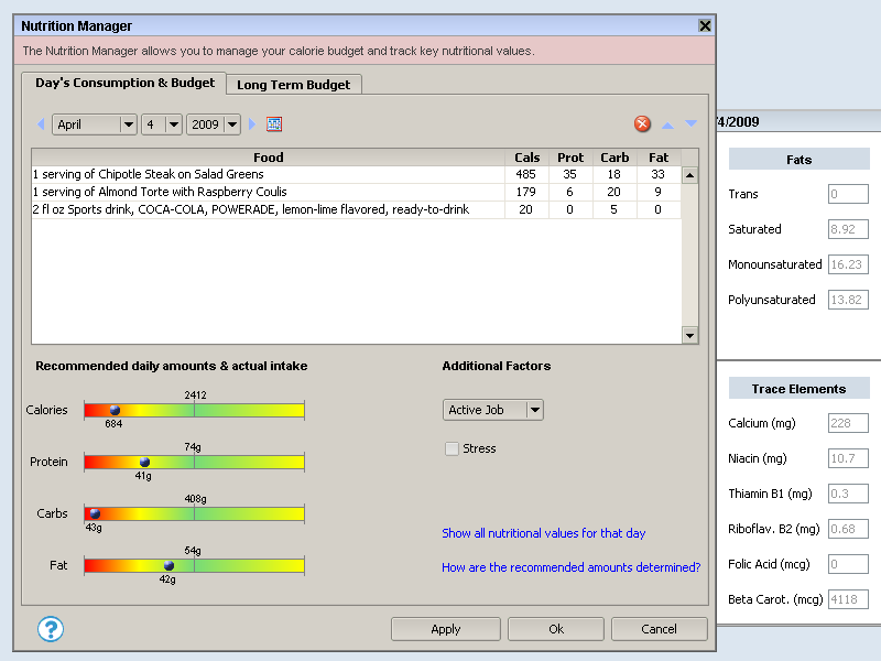 Private Coach includes a nutrition module which keeps track of your diet and helps you to discover new healthy foods.